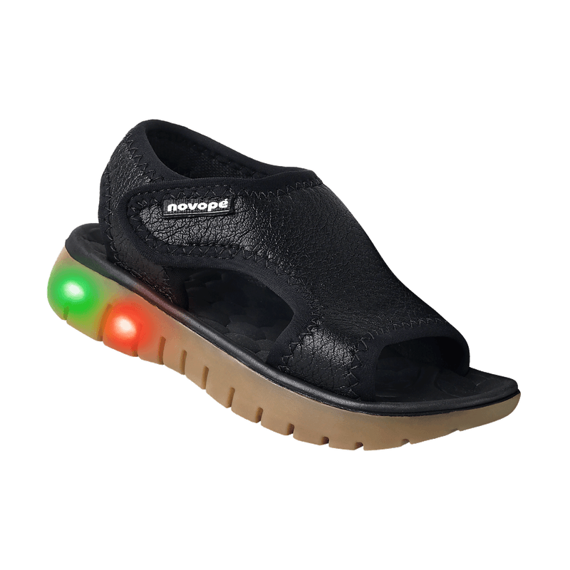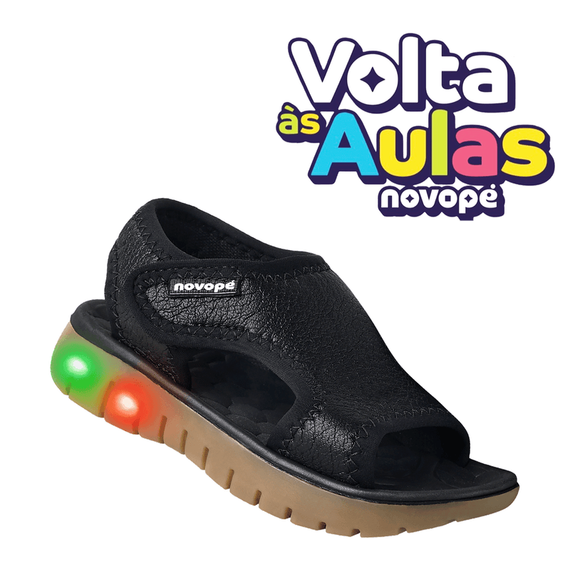 Sandália Infantil Novopé com LED Flat Slim Sintético Preto Básico
