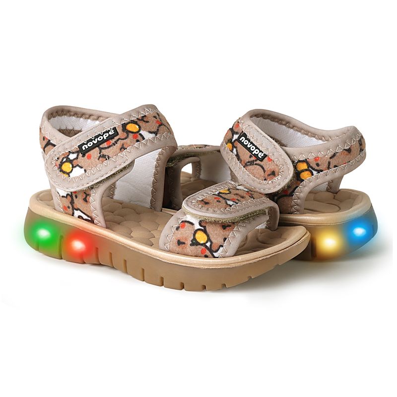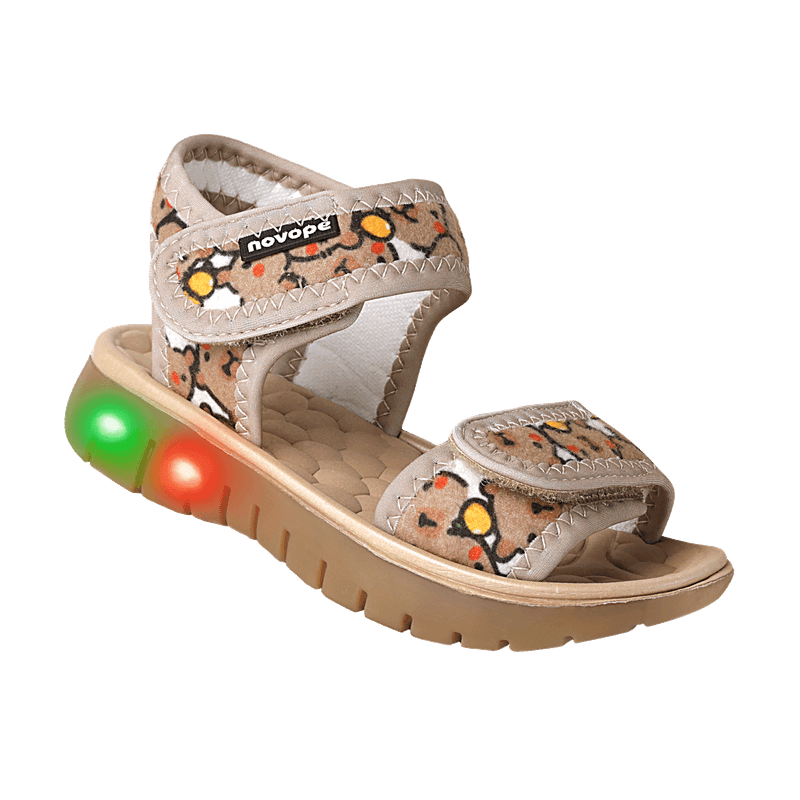 Sandália Infantil Novopé Flat Sport LED Capivara Bege Conforto