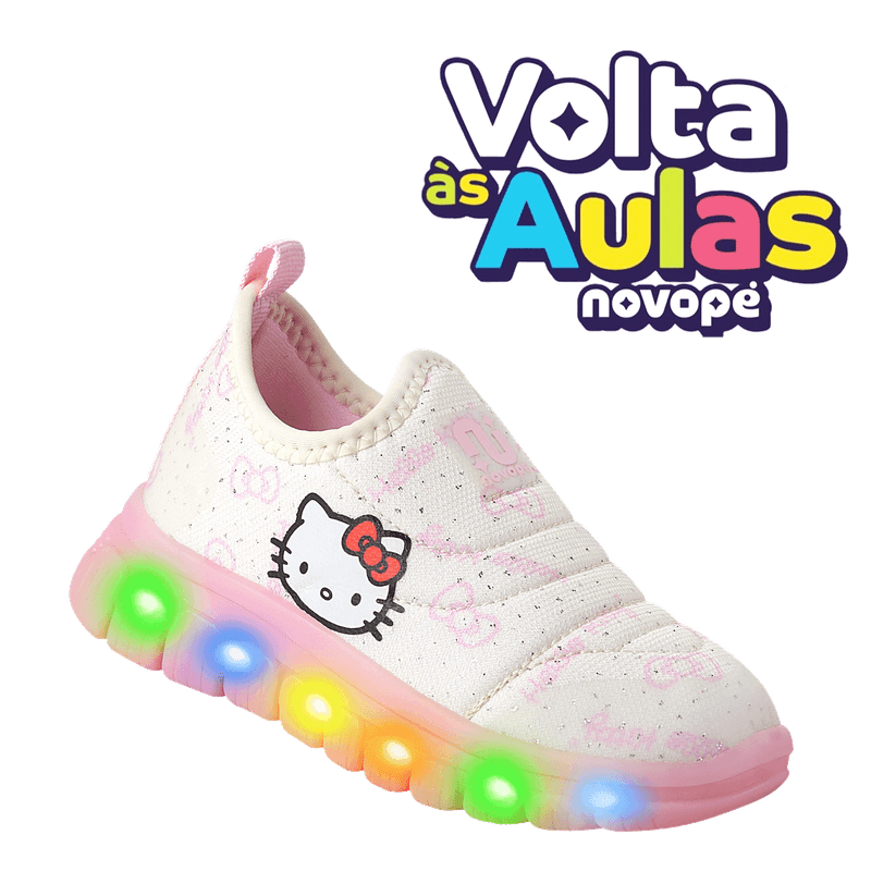 O Tênis Infantil Hello Kitty Novopé LED Rosa com Glitter une diversão, conforto e todo o encanto da personagem mais amada do mundo.