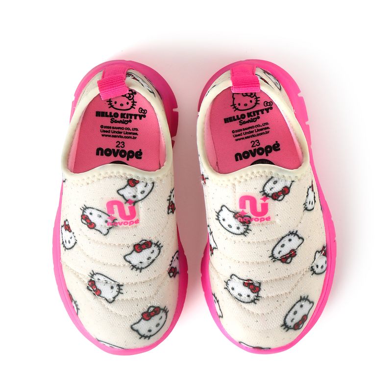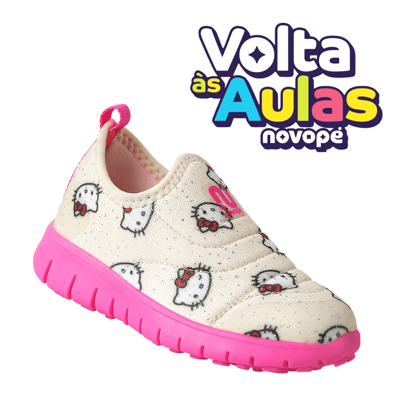 Brilho, conforto e a magia da Hello Kitty em um só modelo. O Tênis Infantil Hello Kitty Novopé Ultra Flex Bege com Glitter traz cabedal têxtil macio com a estampa oficial da personagem (licenciamento Sanrio) e detalhe de glitter que dá um toque especial ao visual, sem abrir mão da leveza.