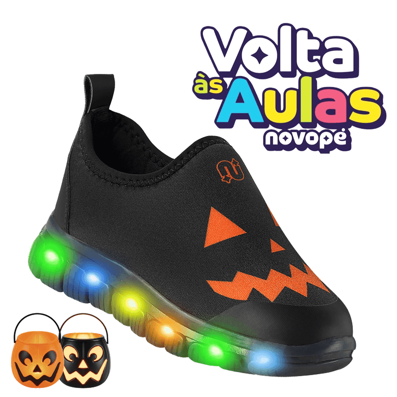 Tênis Infantil Novopé com LED Halloween Preto + Brinde