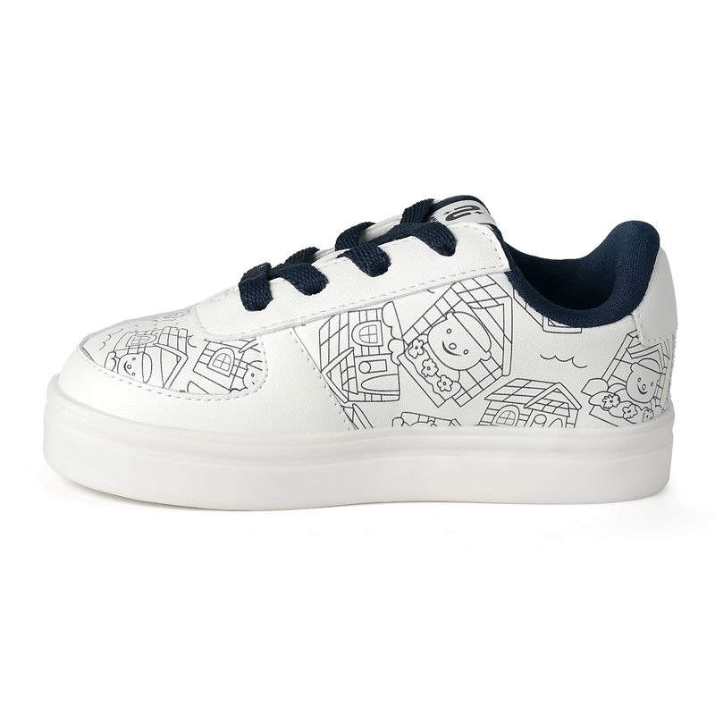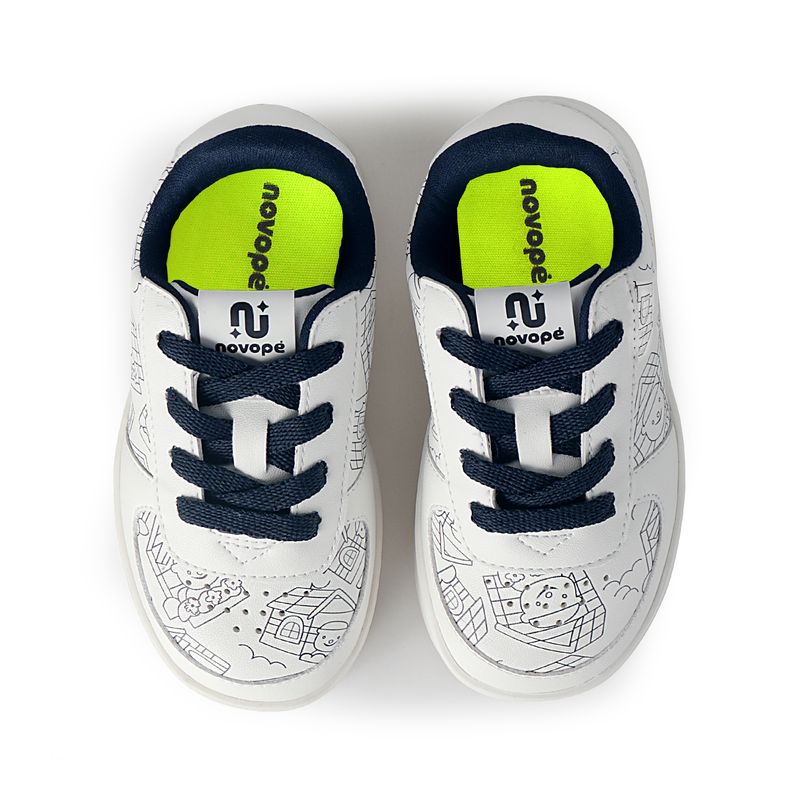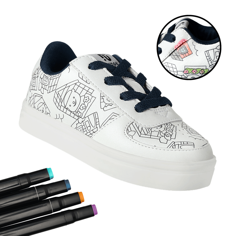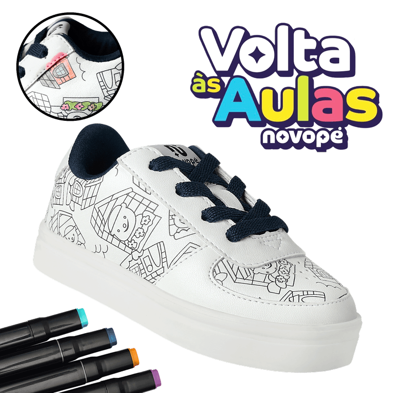 O Tênis Infantil Novopé Cute Colors Branco com Marinho transforma cada passo em uma experiência criativa. Com superfície ilustrada especial para colorir, acompanha um estojo de canetinhas que permite às crianças personalizarem o tênis do seu jeito, criando um par único e cheio de estilo. Além de divertido, é superconfortável: possui cabedal resistente, cadarço na cor marinho e solado leve e antiderrapante que garante segurança durante as brincadeiras. Ideal para estimular a imaginação e deixar o look ainda mais exclusivo.
