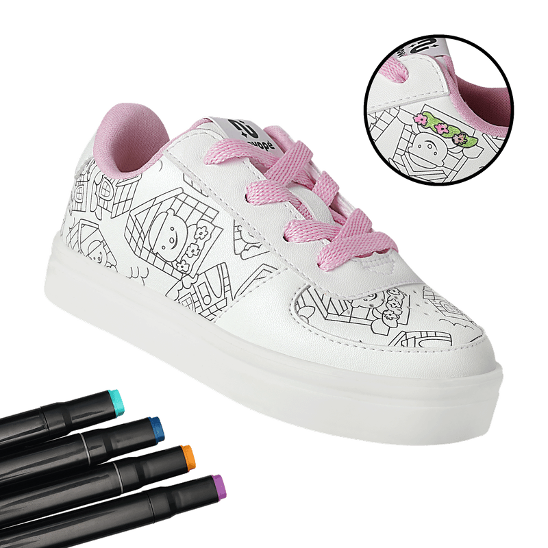 O Tênis Infantil Novopé Cute Colors Branco com Rosa é diversão e estilo em um só produto! Feito em material resistente e confortável, traz design exclusivo para ser colorido pelas próprias crianças, estimulando a criatividade. Acompanha um estojo de canetinhas especiais para personalizar o tênis do jeito que a imaginação mandar, tornando cada par único e cheio de personalidade. Além disso, seu solado leve e antiderrapante garante segurança a cada passo, enquanto o cadarço rosa adiciona um toque de delicadeza ao visual.