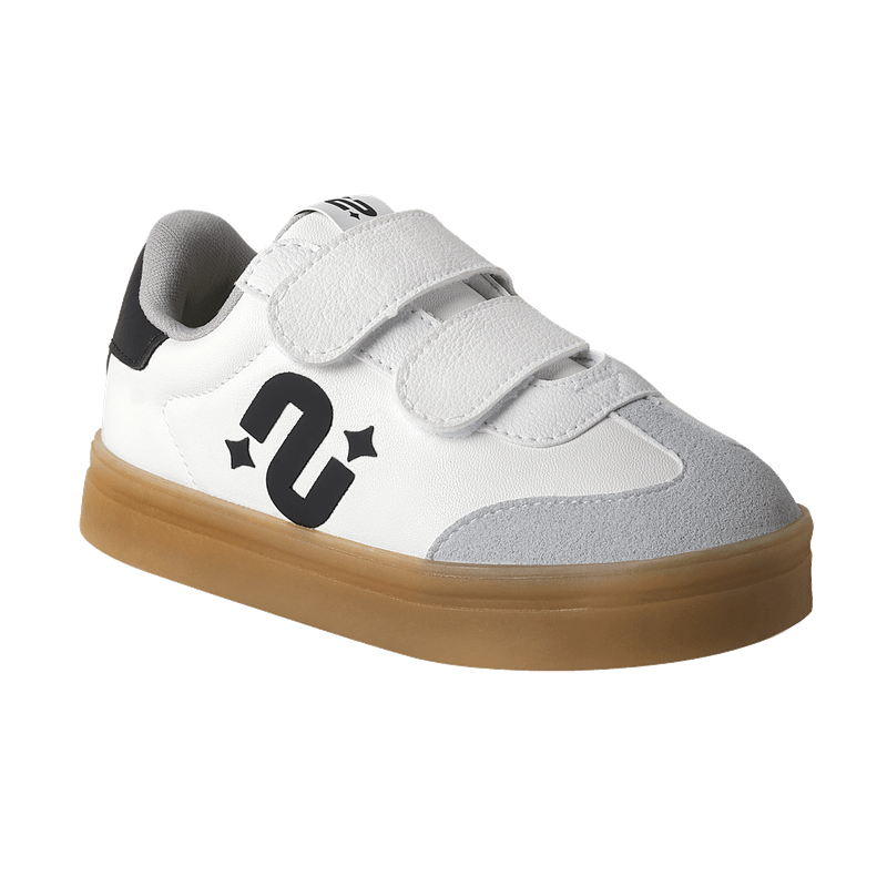 Tênis Infantil Novopé SK Branco com Cinza e Solado Caramelo Estiloso